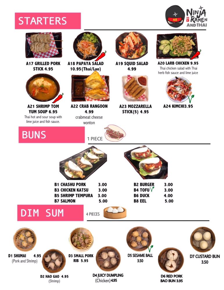 With a menu that boasts starters like Seaweed Salad, Grilled Thai Sausage, and Fried Calamari, Ninja Ramen and Thai sets the stage for a dining experience unlike any other. Their selection of buns, including Chashu Pork, Chicken Katsu, and Shrimp Tempura, offers a tantalizing array of flavors and textures.